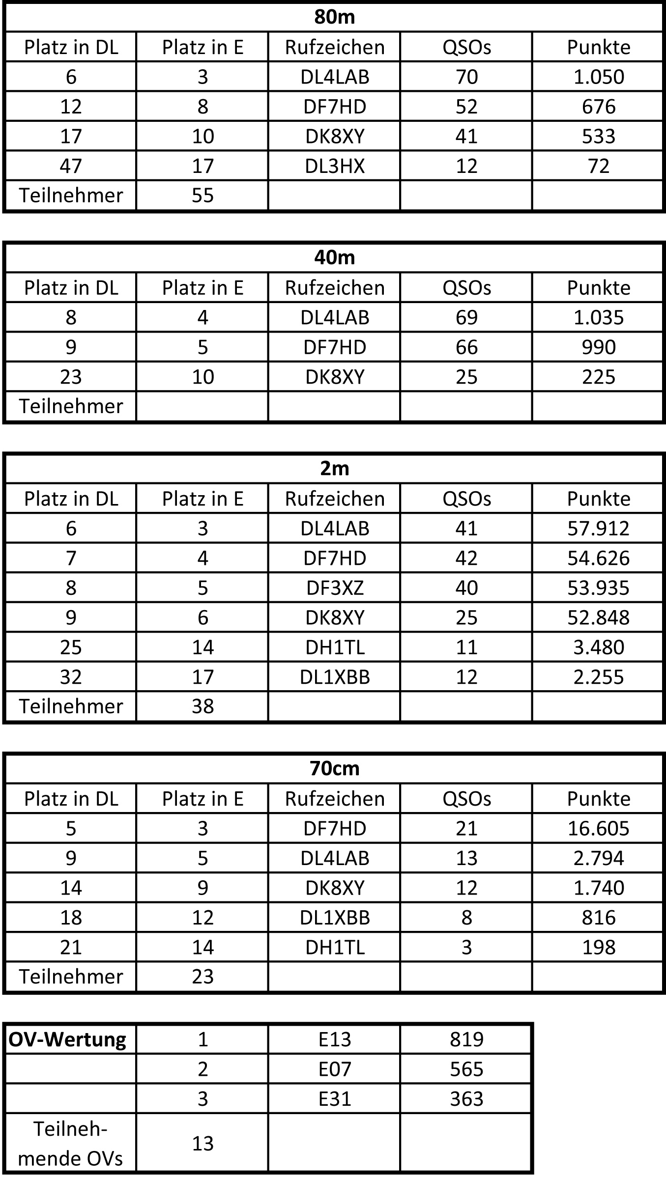 zum 18.mal in ununterbrochener Folge hat der E13 im Hamburg-Contest den 1. Platz erreicht. Hier die Plazierungen der E13-Mitstreiter: